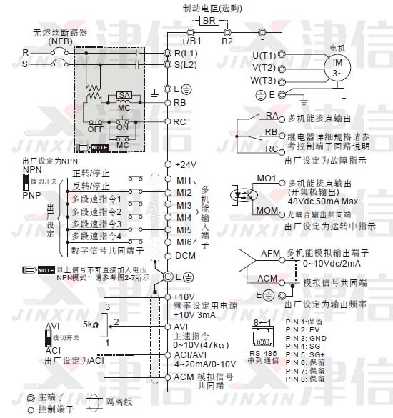 DELTA臺達VFD-E變頻器接線圖和接線注意事項
