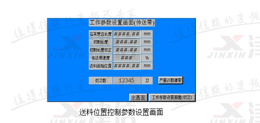改造系統采用三臺Danfoss變頻器和兩塊MCO305,以及一個臺達HMI。系統采用RS485通訊。主機旋轉采用4kW變頻器直接拖動,通過HMI直接設定其運行頻率。送料位置控制參數如下圖所示。這些參數在變頻器第19組參數開放出來,之所以采用HMI,主要是為了方便用戶進行操作。